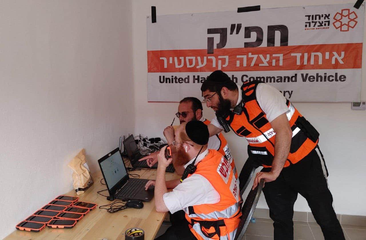צוותי הרפואה של איחוד הצלה מישראל ומתנדבי 'חברה הצלה באדראג-קערעסטיר' מארה"ב מאבטחים רפואית את שלומם של המתפללים בהילולא של רבי ישעיה