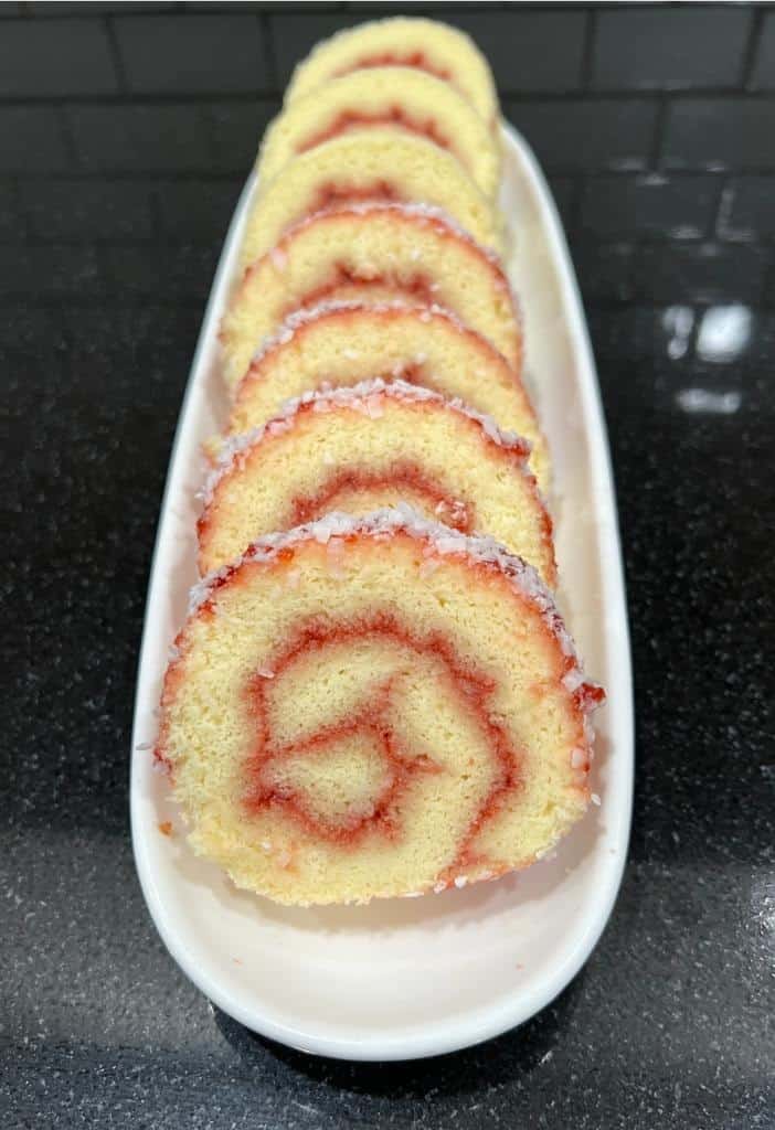 אפשר למרוח ריבה מעל העוגה ולפזר קוקוס טחון..