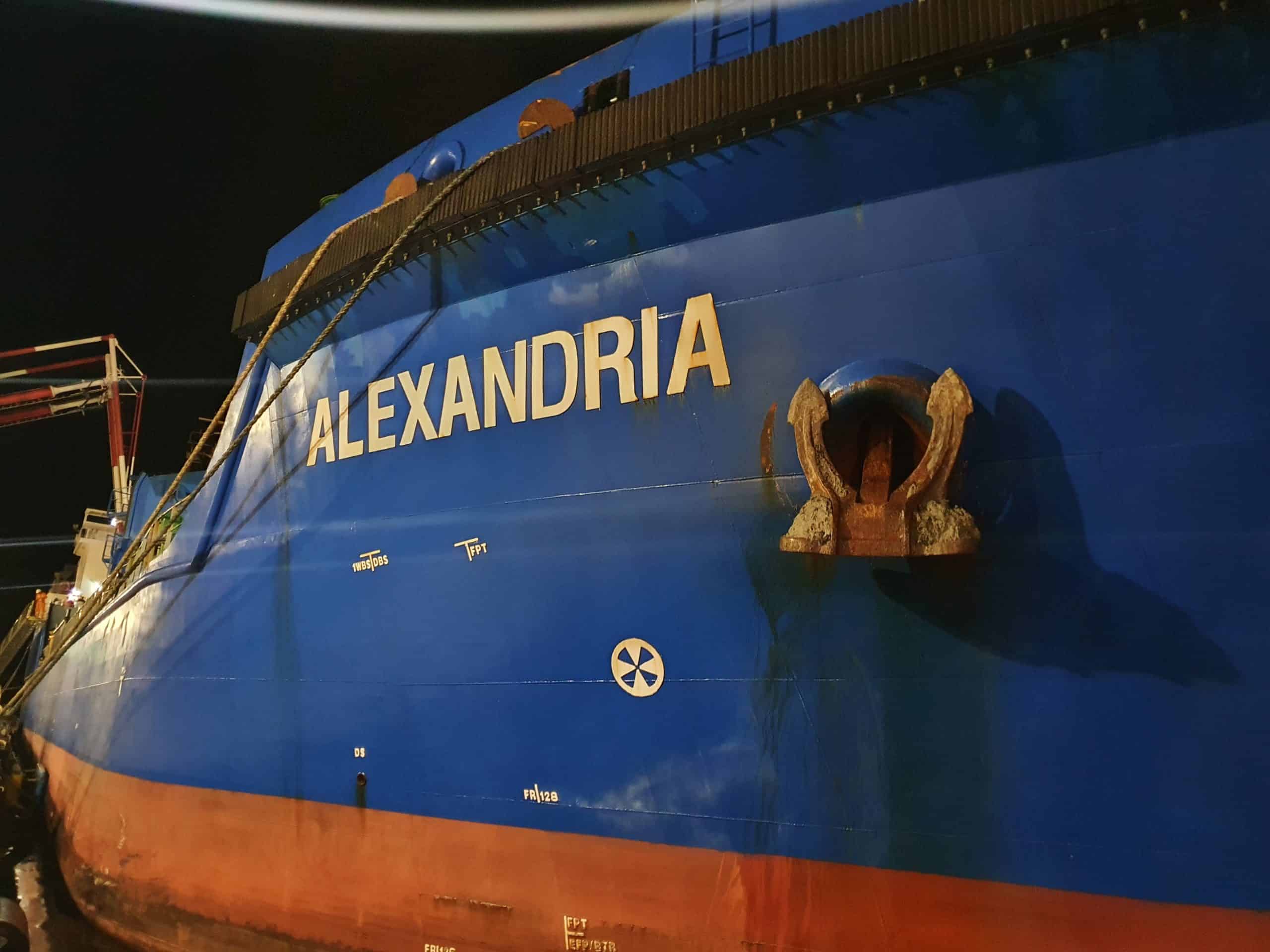 האונייה Alexandria, הנושאת דגל קפריסין ואשר עגנה בנמל הדלק שבנמל חיפה ב-25 בספטמבר 2020, ביצעה פעולות להוצאת מי נטל – מי ים הנטענים ונפרקים מכלי שיט על מנת לאזנו ולסייע בציפת הכלי בסמוך לרציף התדלוק.