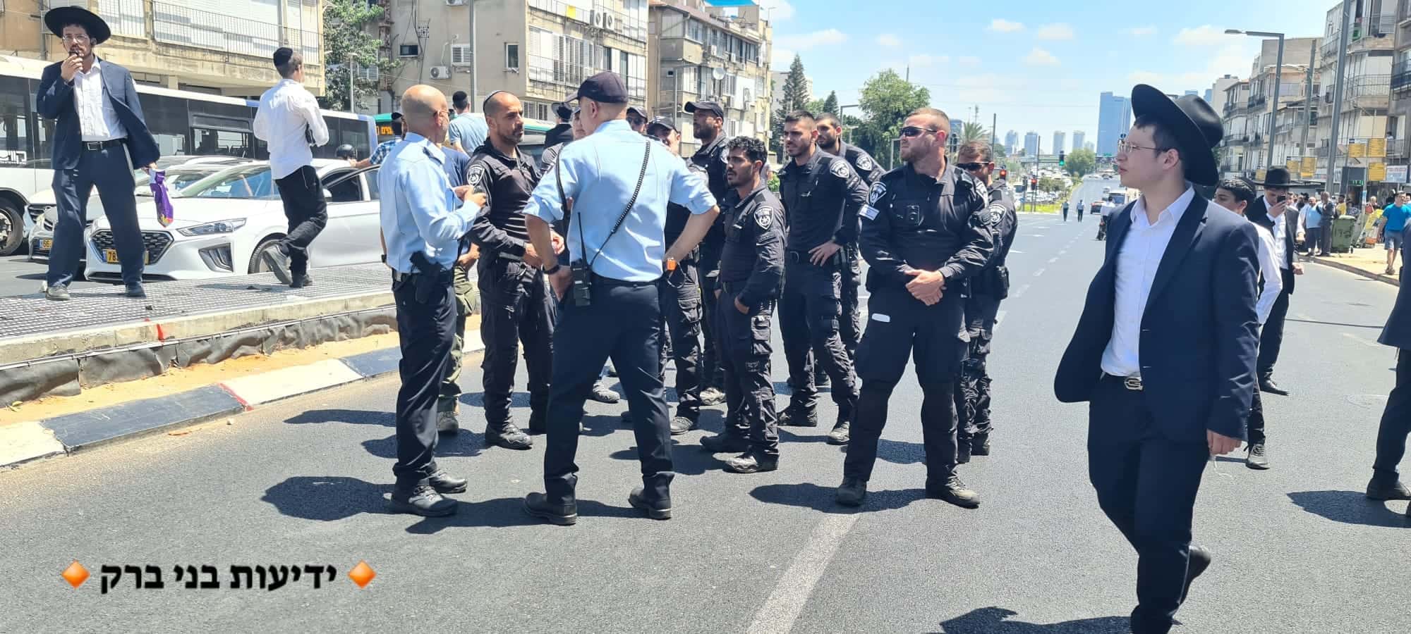 קרדיט: ידיעות בני ברק / המפגינים יושבים על הכביש בבני ברק