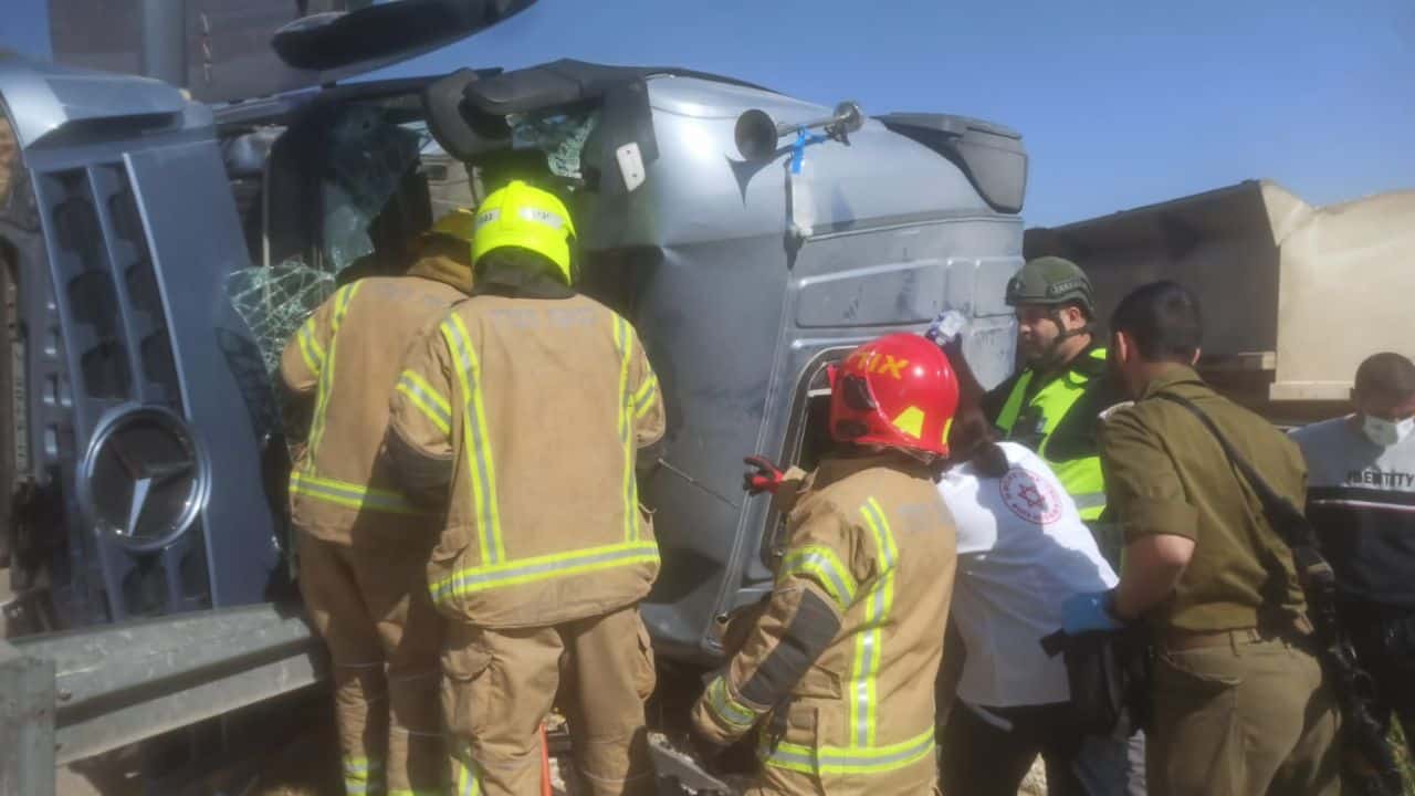 משאית פלסטינית התהפכה פצוע קשה תושב יריחו בן 40 • מסוק הוזנק לפינוי הפצוע