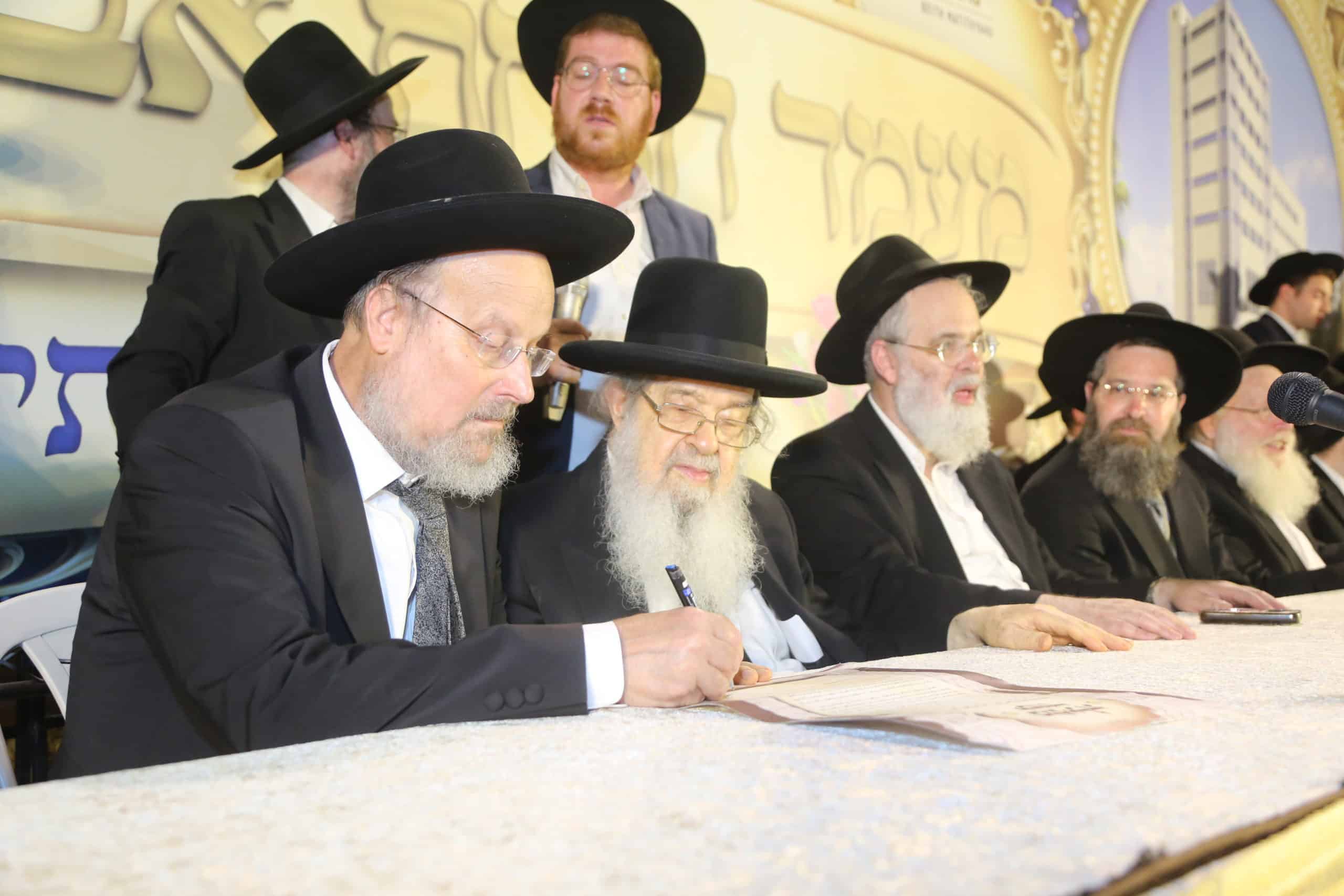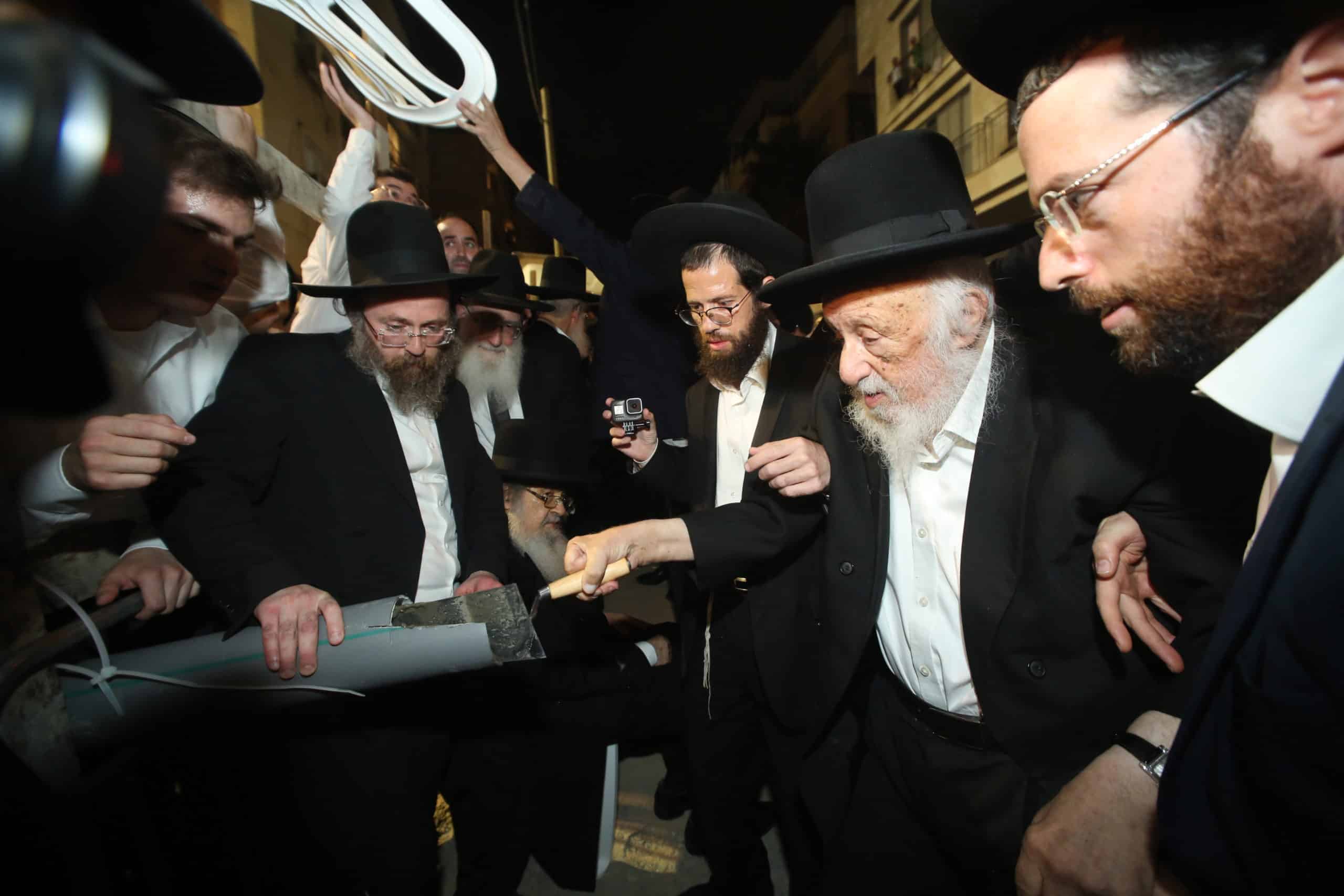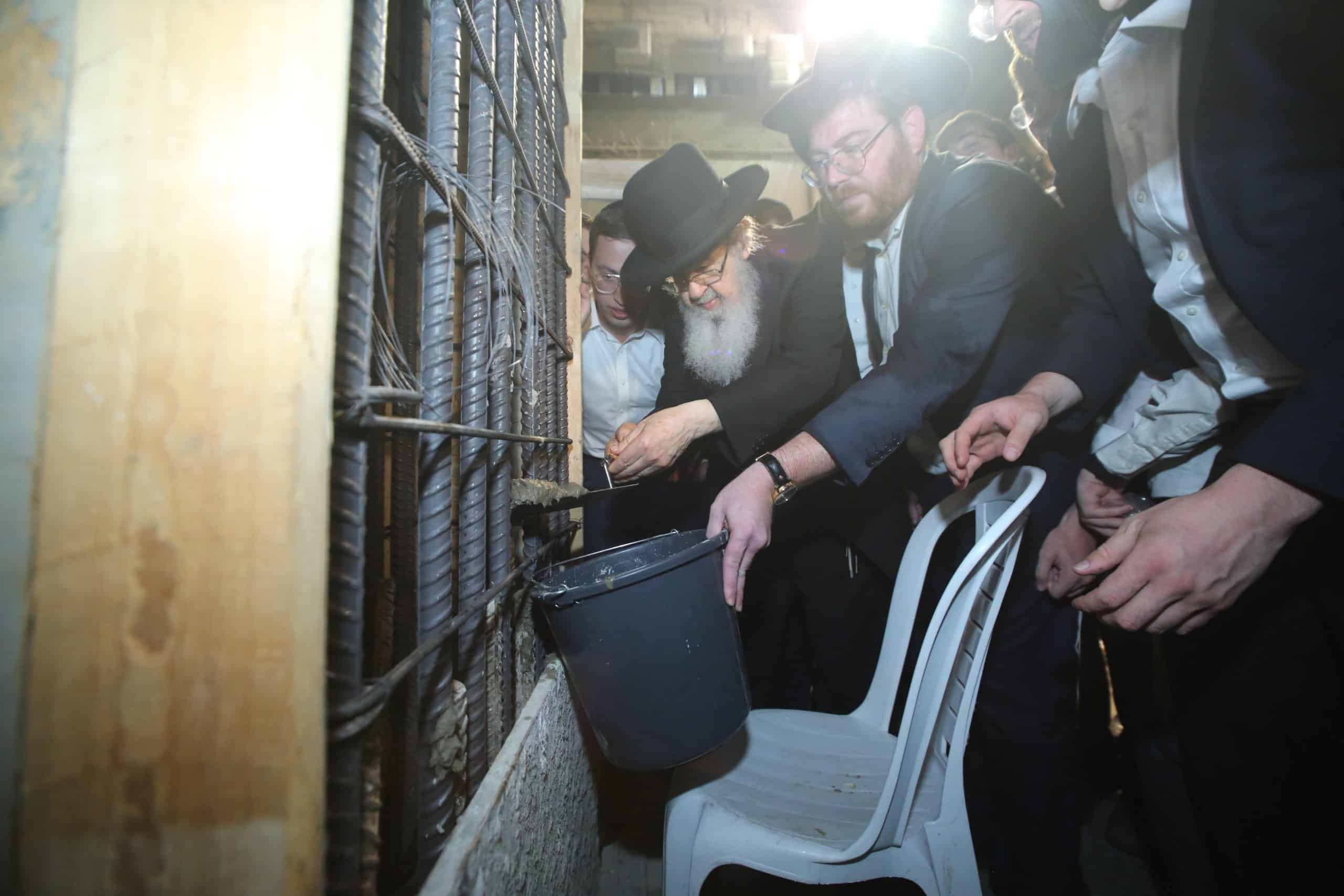 מעמד הנחת אבן הפינה לאגף חדש בישיבת בית מתתיהו בראשות רבינו רשכבה"ג מרן ראש הישיבה הגרי"ג אדלשטיין וחברי מועצג"ת שליט"א.