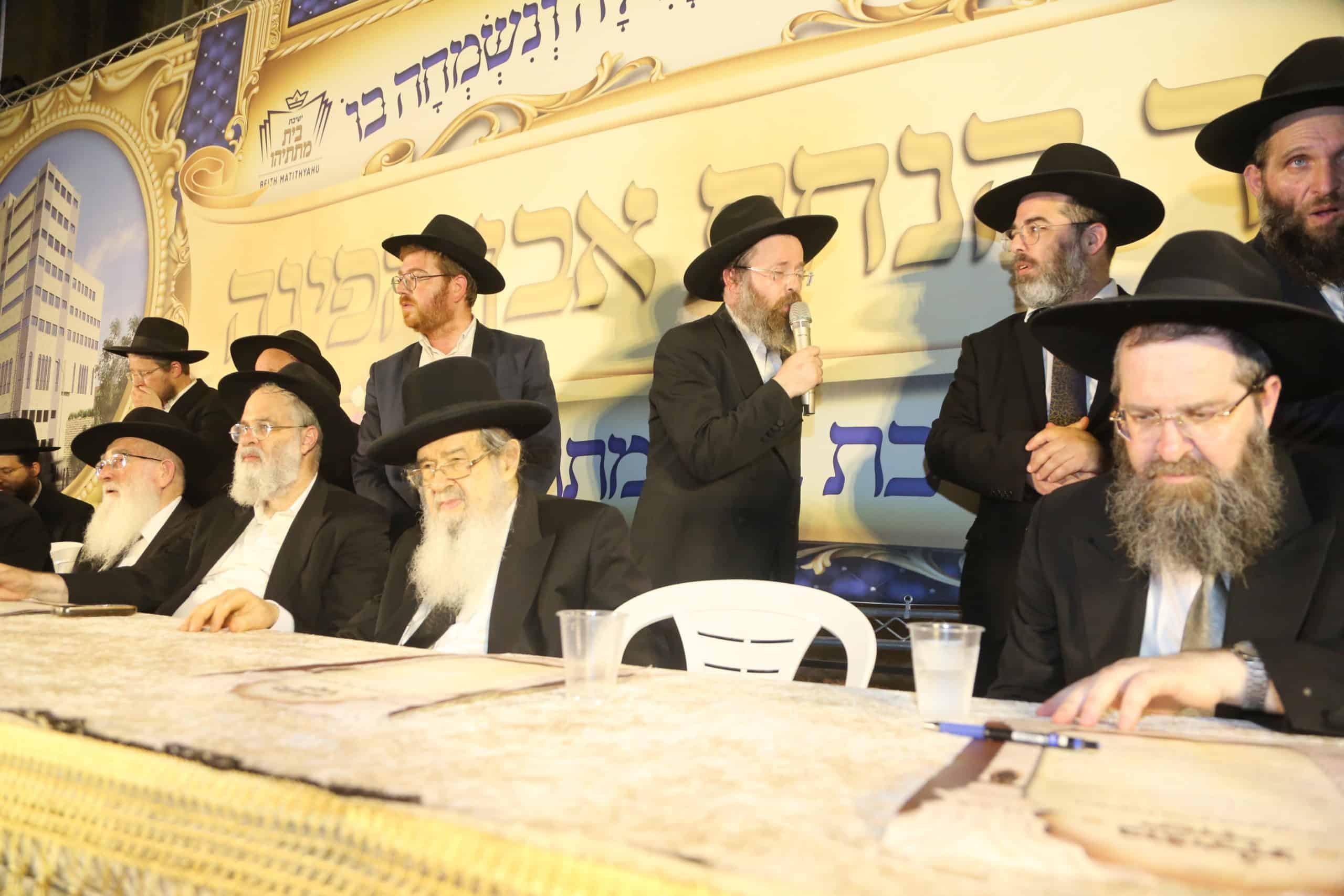 מעמד הנחת אבן הפינה לקראת תחילת מבנה ישיבת בית מתתיהו בבני ברק בראשות ראש הישיבה הגאון הרב ברוך ויסבקר שליט"א בהשתתפות גדולי ישראל שליט"א