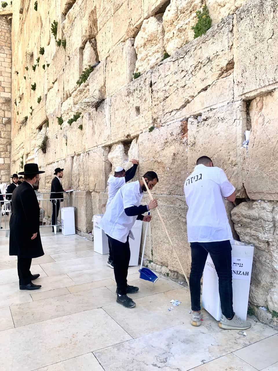 לקראת חג הפסח הבא עלינו לטובה, בקרן למורשת הכותל המערבי נערכים כמידי שנה לעליית אלפי מתפללים לרגל, והבוקר (ד') פונו פתקי התפילה שהוטמנו בין נדבכי הכותל המערבי בחצי השנה האחרונה. הפינוי נעשה על פי ההנחיות ההלכתיות ובאמצעות שימוש בכפפות ובכלי עץ חד פעמיים, כשהמטרה היא לפנות מקום לפתקים חדשים של התיירים והמבקרים שצפויים להגיע לירושלים בחודשים הקרובים. הפתקים נאספו בשקים וייקברו יחד עם ספרי קודש בלויים המועברים לגניזה ייעודית בהר הזיתים.