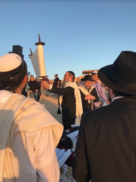 האירוע מתחיל בשעות הזריחה המוקדמות, הרב וראש העיר מגיעים תחת חופה אחוזים בספר תורה לקול שירת הנערים, לאחר מכן הנערים מניחים תפילין (רבים מההורים מצטרפים גם הם, מפשילים שרוול ומניחים תפילין אצל פעילי בית חב״ד…), נעמדים בקבוצות ומתחילים להתפלל ביחד, לאחר קריאת שמע המונית נערכה קריאת התורה בספר התורה המיוחד שנמצא בבית הכנסת העתיק של מצדה.