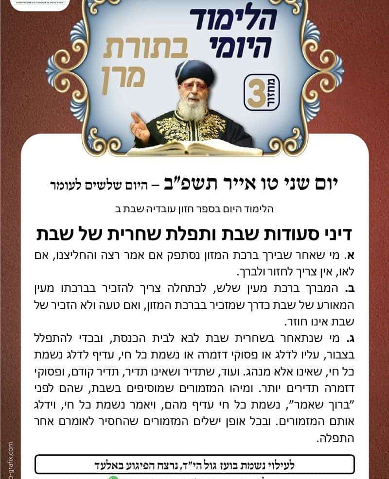 הלימוד היומי בתורת מרן | יום שני ט"ו באייר תשפ"ב