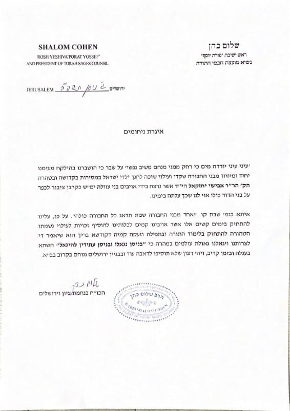 על המצב: ״בימים קשים אלו אשר אויבינו קמים לכלותינו עלינו להוסיף זכויות לע״נ בלימוד התורה, בתפילה וזעקה״ • המכתב המלא