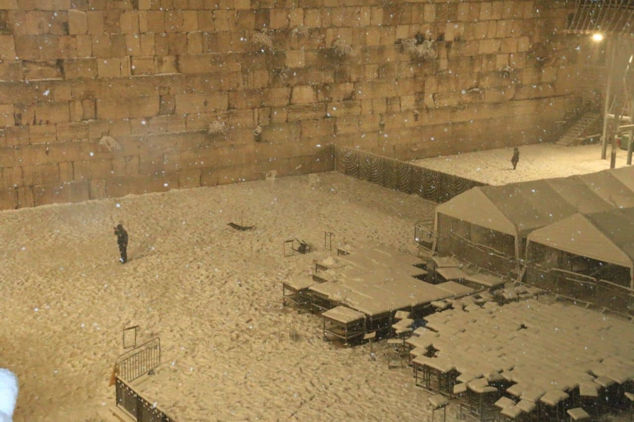 הכותל בתמונות מרהיבות מהלילה שהיה. רב הכותל המערבי שמואל רבינוביץ אומר "בימים כמו היום, בהם השלג עטף את הרחובות והקור הירושלמי חודר העצמות השאירו רבים בבית החם, מתגלים אנשי ונשות הכותל האמיתיים – אלה שמתמידים להגיע בכל יום ויום, שנה אחרי שנה, להתפלל במקום הקדוש. בהשקט ובצנעה, בכל מזג אוויר, בכל מציאות ביטחונית, הם עומדים על משמרתם בתפילה שקטה, ומקיימים בגופם את שרשרת הדורות היהודית של מתפללי הכותל המערבי. אשריכם."