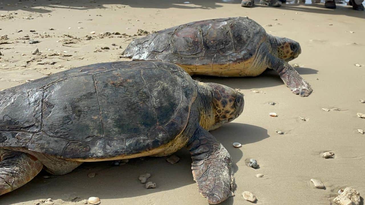 5 צבי ים שוחררו לאחר שעלו בחכת דייגים וניזוקו • צפו בגלריה