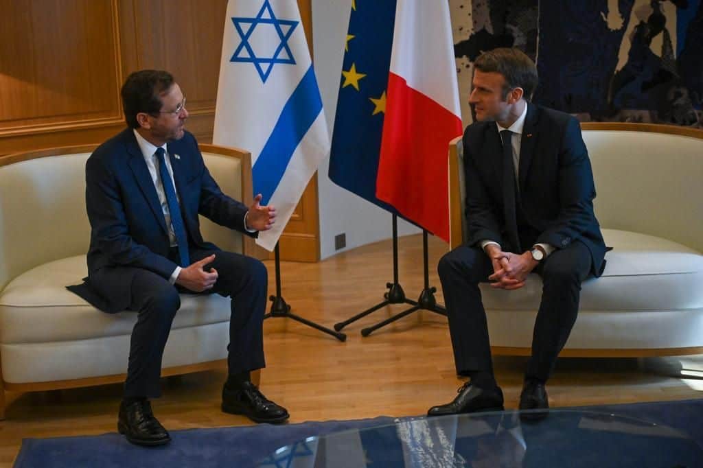 נשיא המדינה יצחק הרצוג פתח את ביקורו בצרפת הבוקר (א), בפגישת עבודה מדינית עם נשיא צרפת, עמנואל מקרון.